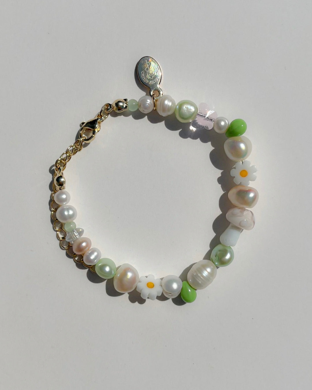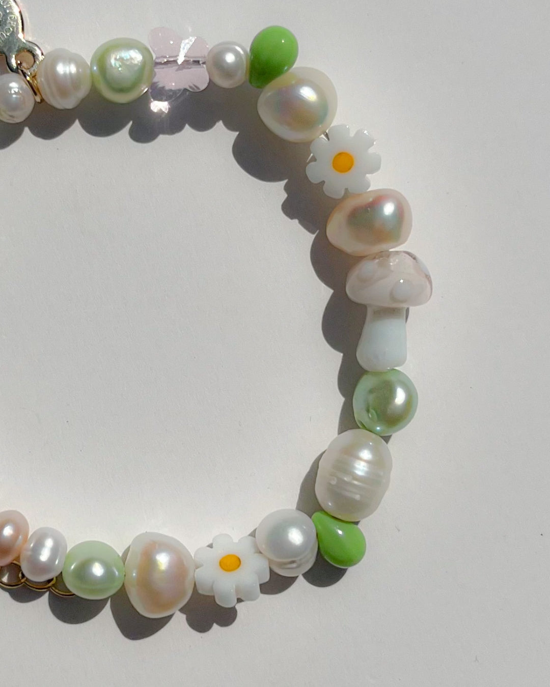 Get ready to be enchanted by our Enchanted Freshwater Pearls Bracelet, inspired by forest green and wild flowers.