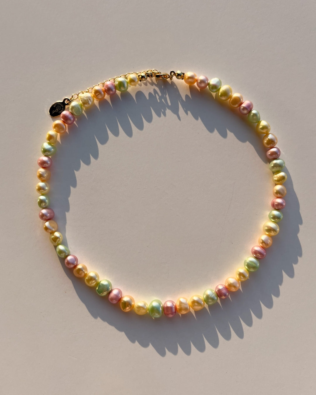The Gardiner Confetti Freshwater Pearl Necklace is made using high-quality AA+ freshwater pearls. Finished with 14k gold clasps and adjustable chain.