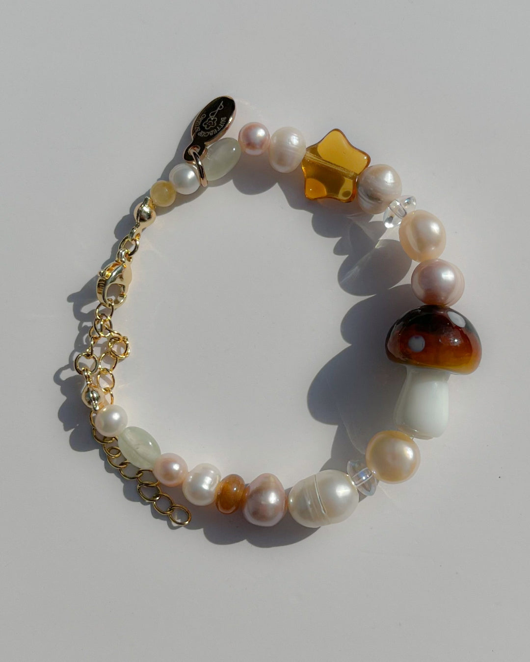Our earth toned Starry Mushroom Freshwater Pearls Bracelet is our go to for boho feels all around.