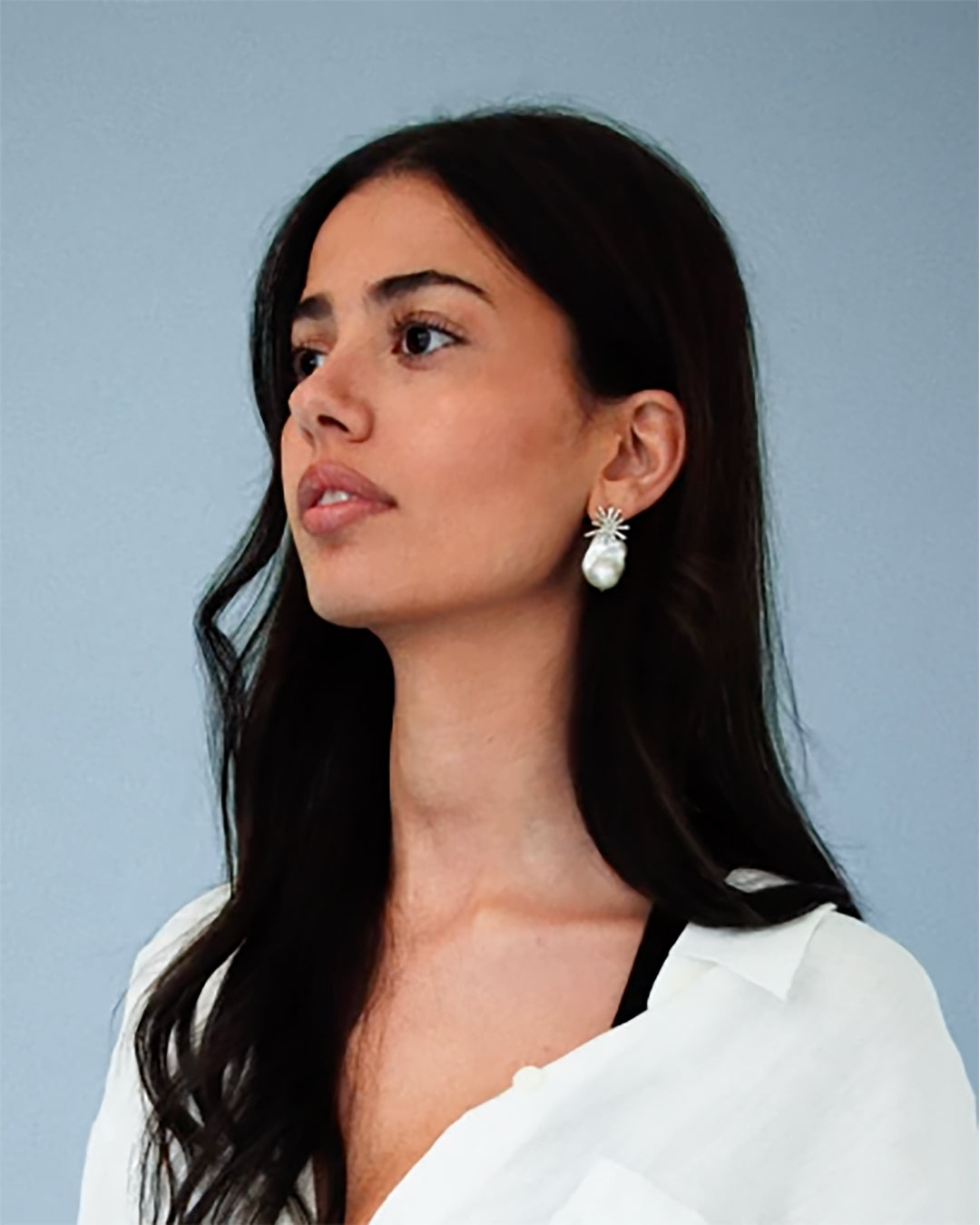 The Soltra Freshwater Pearl Earrings feature a 22 mm AAAA-highest grade white baroque freshwater pearl stud paired with a sun motif attachment in your choice of 24k gold-plated or sterling silver 925, carrying the essence of summer with elegance everywhere you go.
