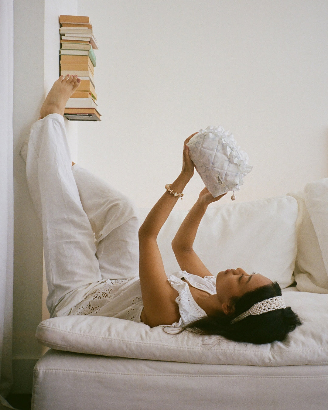 Produced in ultra-limited quantities, the Baguette x Buttercup Studio Ocean Spiral Ruffles Pouch is available exclusively at baguettepouch.com, where the complete collaboration with the Limited Edition Pouch and the Exclusive Freshwater Pearl Bracelet can be collected together as a special bundle with $15 in savings.