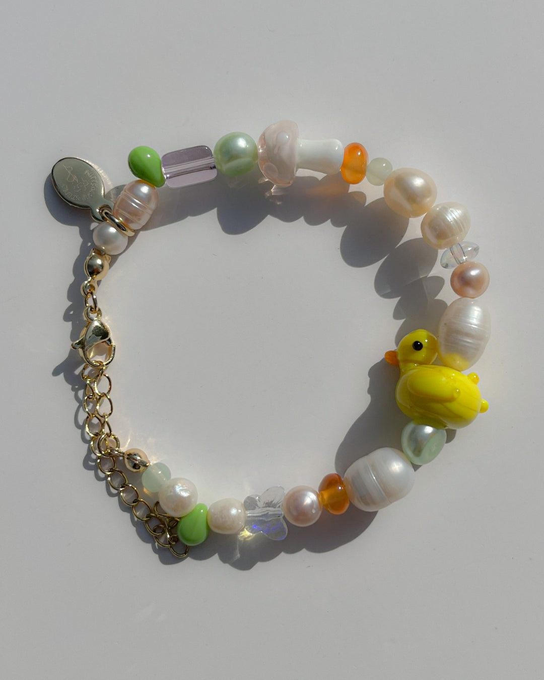 Compliment your cottage core style with our adorable Wonderland Duckie Freshwater Pearls Bracelet.